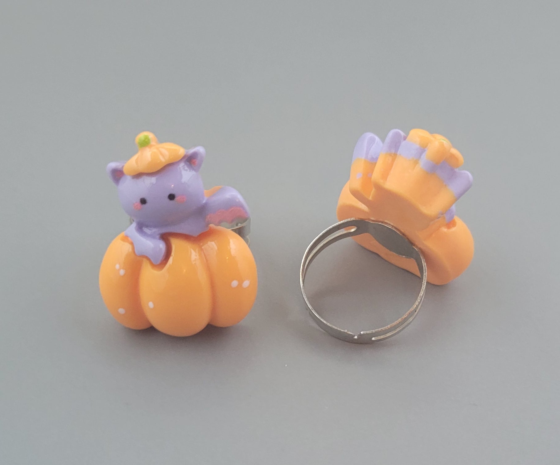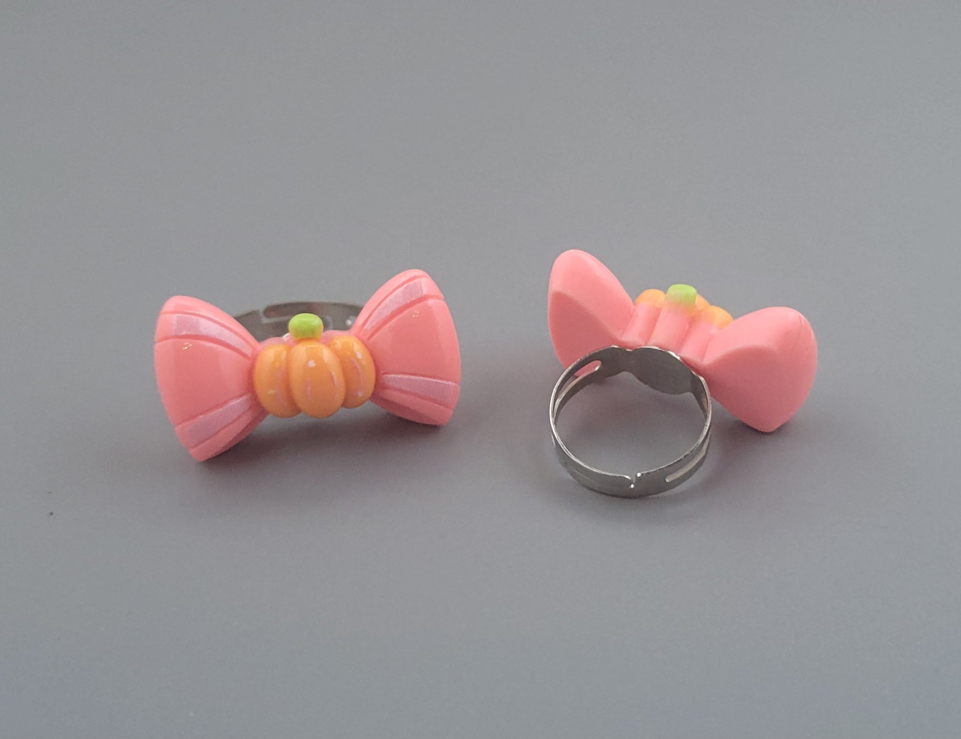 Whether you need a goofy gourd or a pumpkin with a bow, these rings are great for harvest season! Made on adjustable ring bases, these rings can accommodate a range of finger sizes.