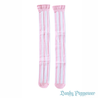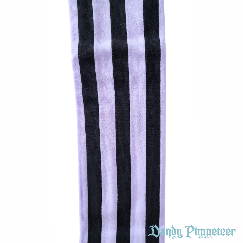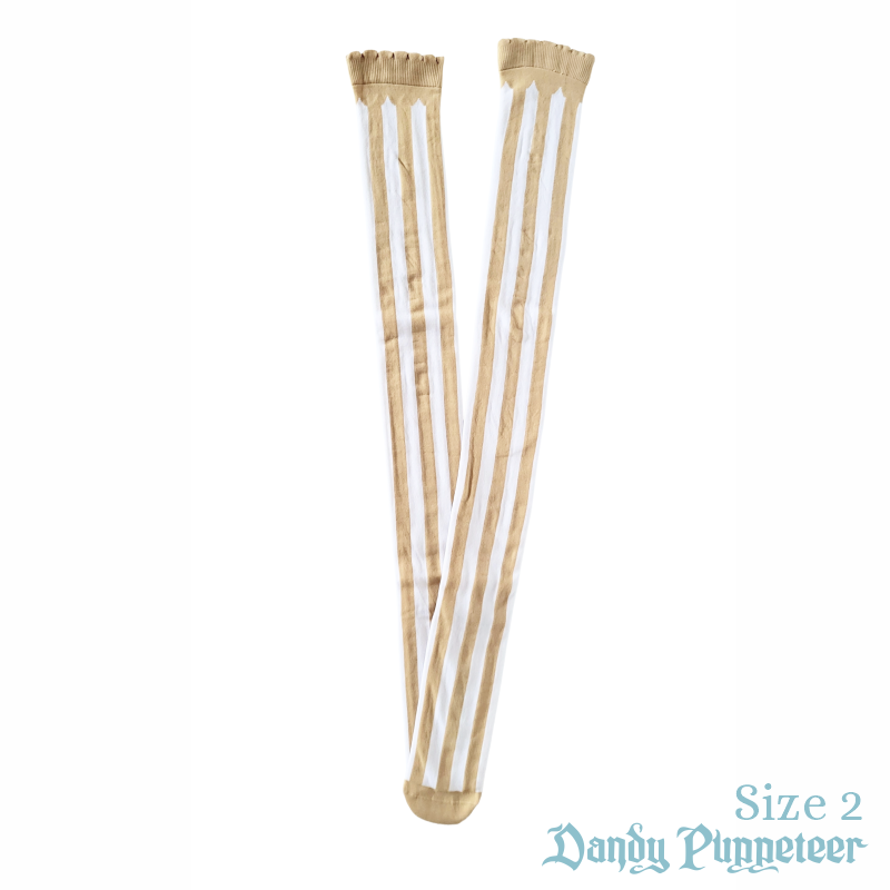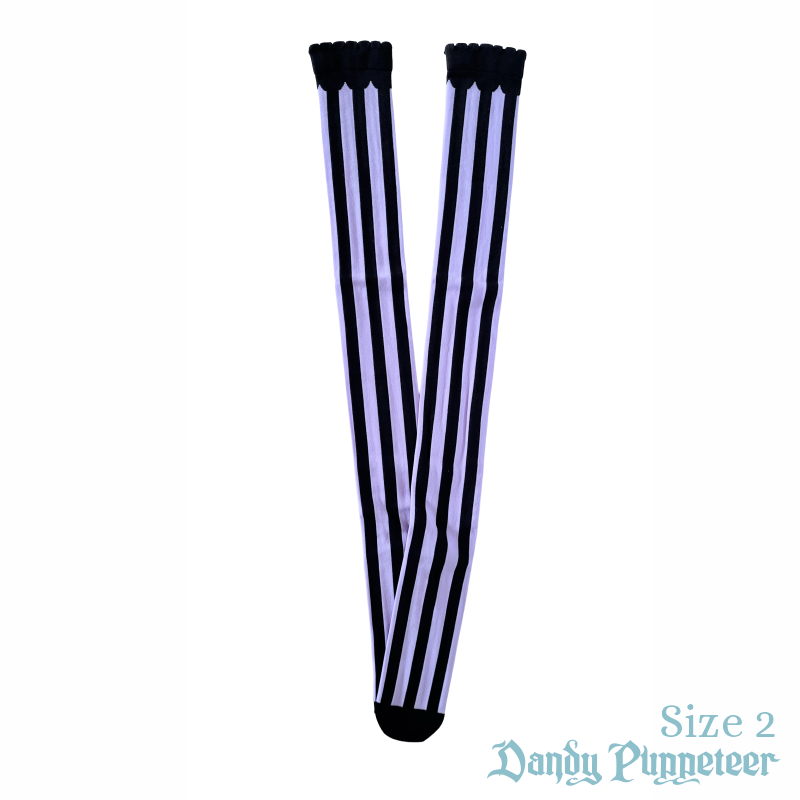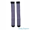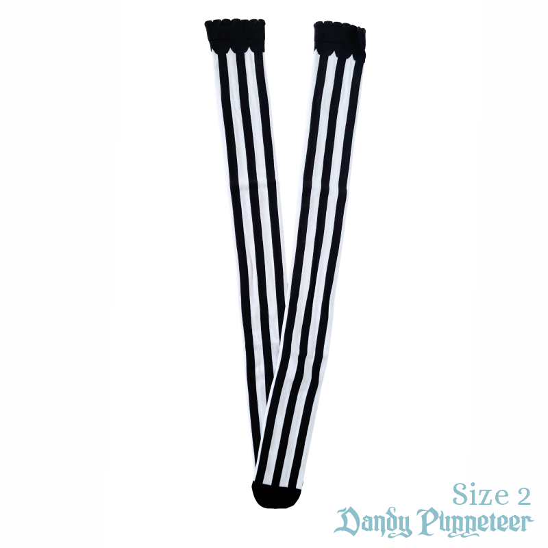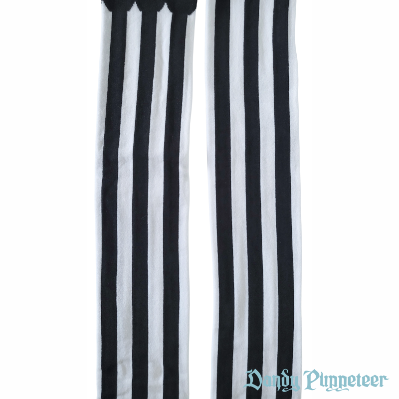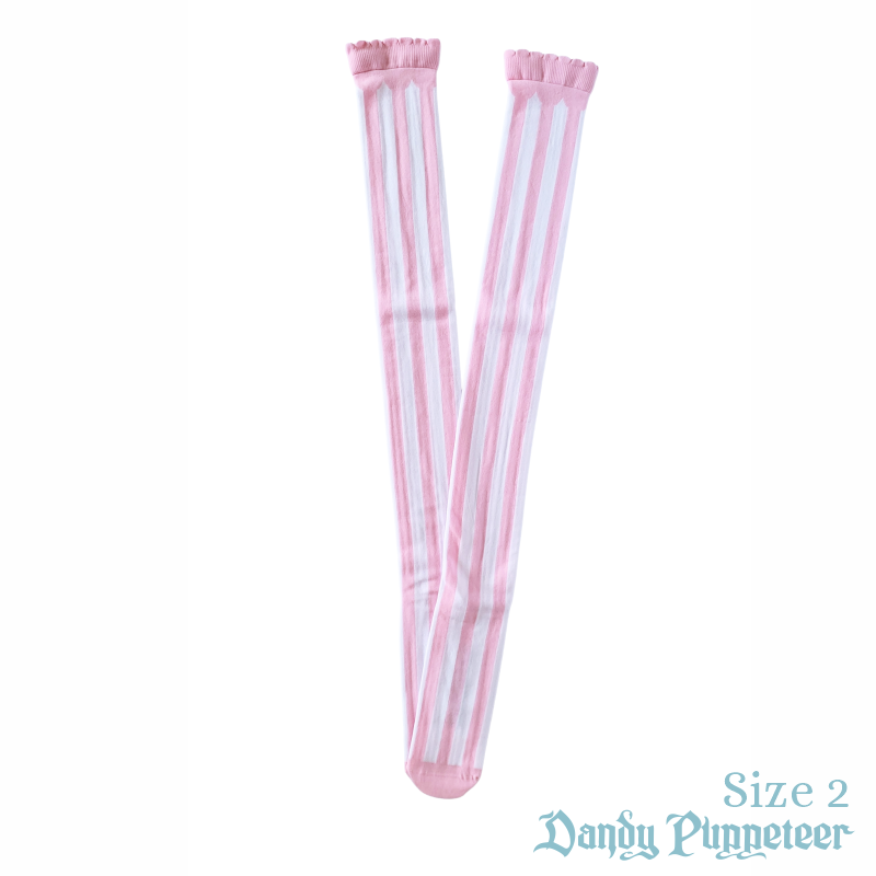 The Marionette Over Knee Socks feature thick vertical stripes with a scalloped trim.