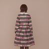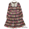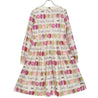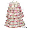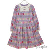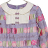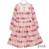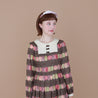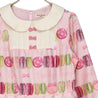A feminine dress with a cute round collar and three ribbons on the yoke.