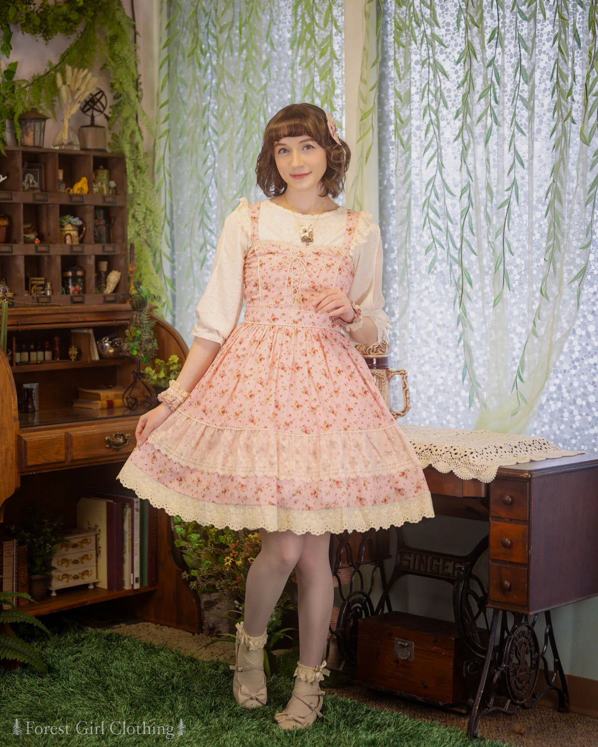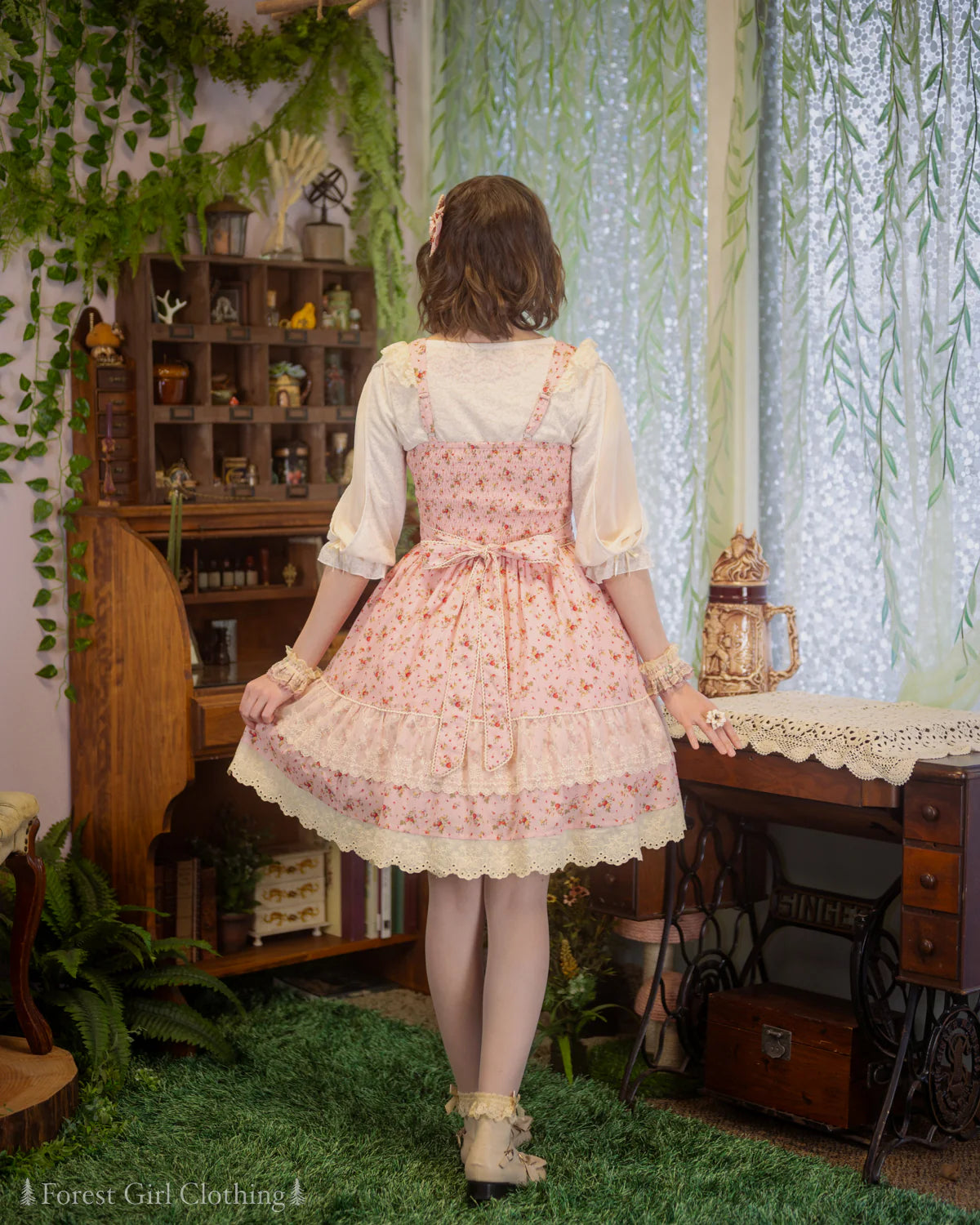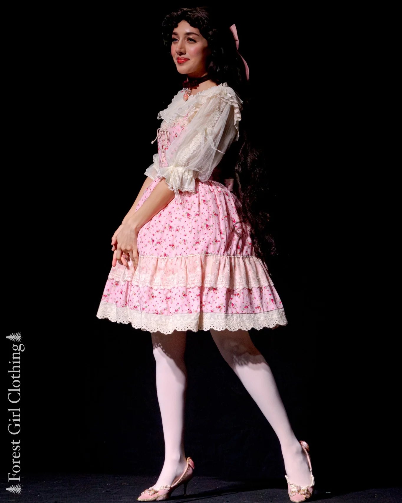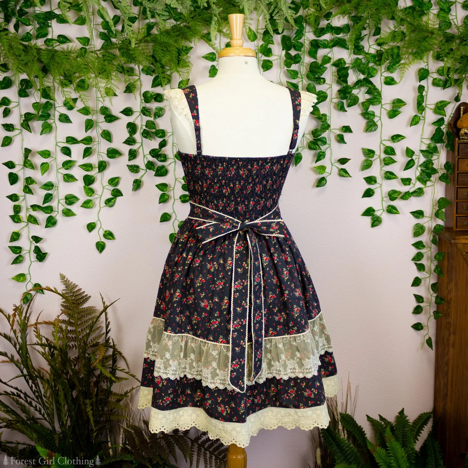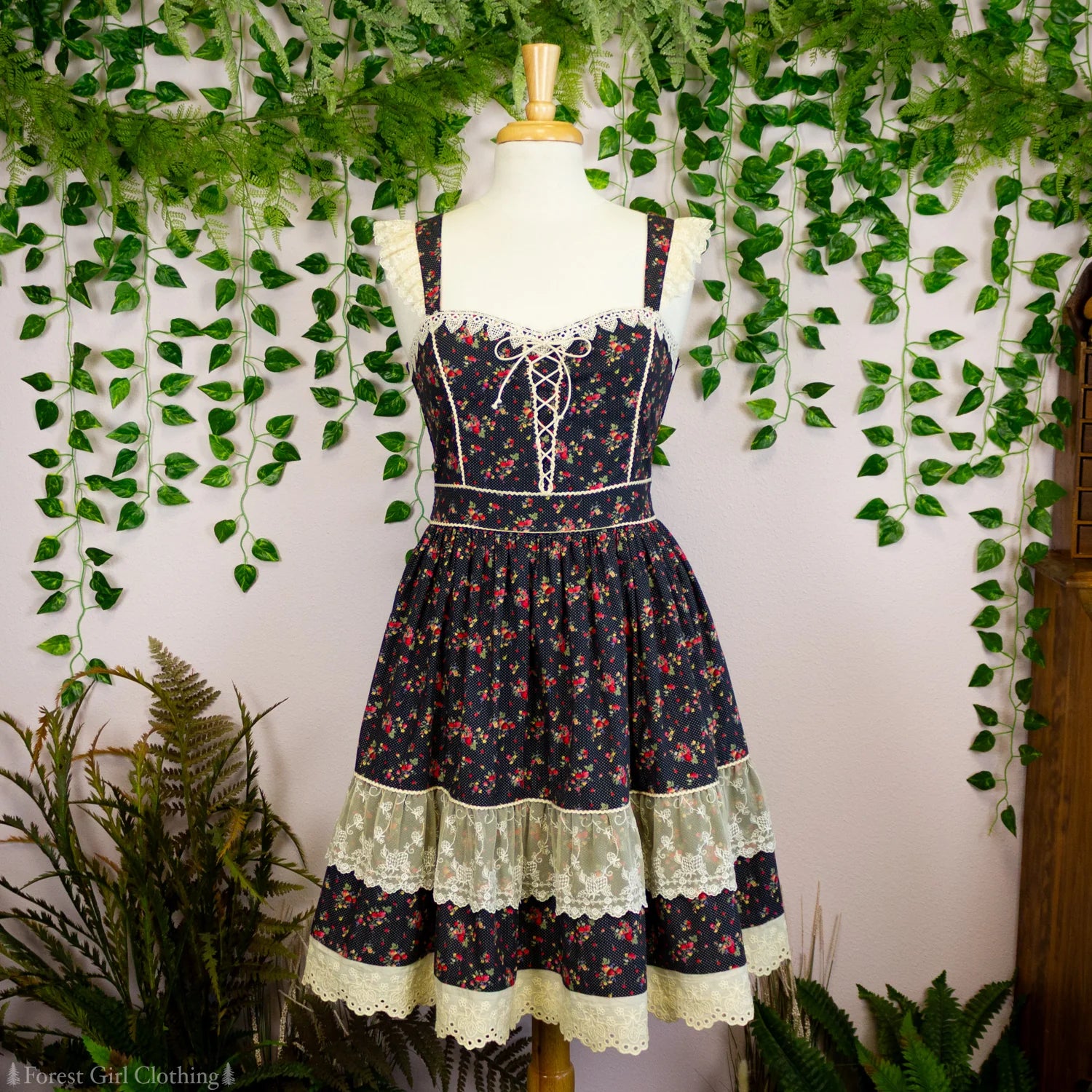A dress as sweet as strawberries and cream! This summery sundress is made from cotton with an adorable strawberry print, and it is trimmed with three types of strawberry lace!
