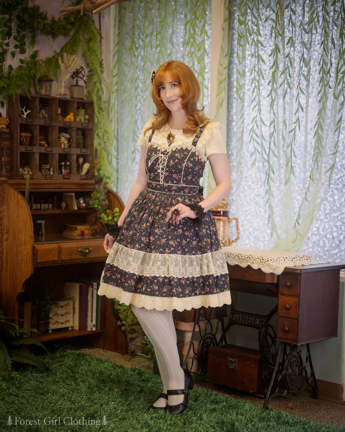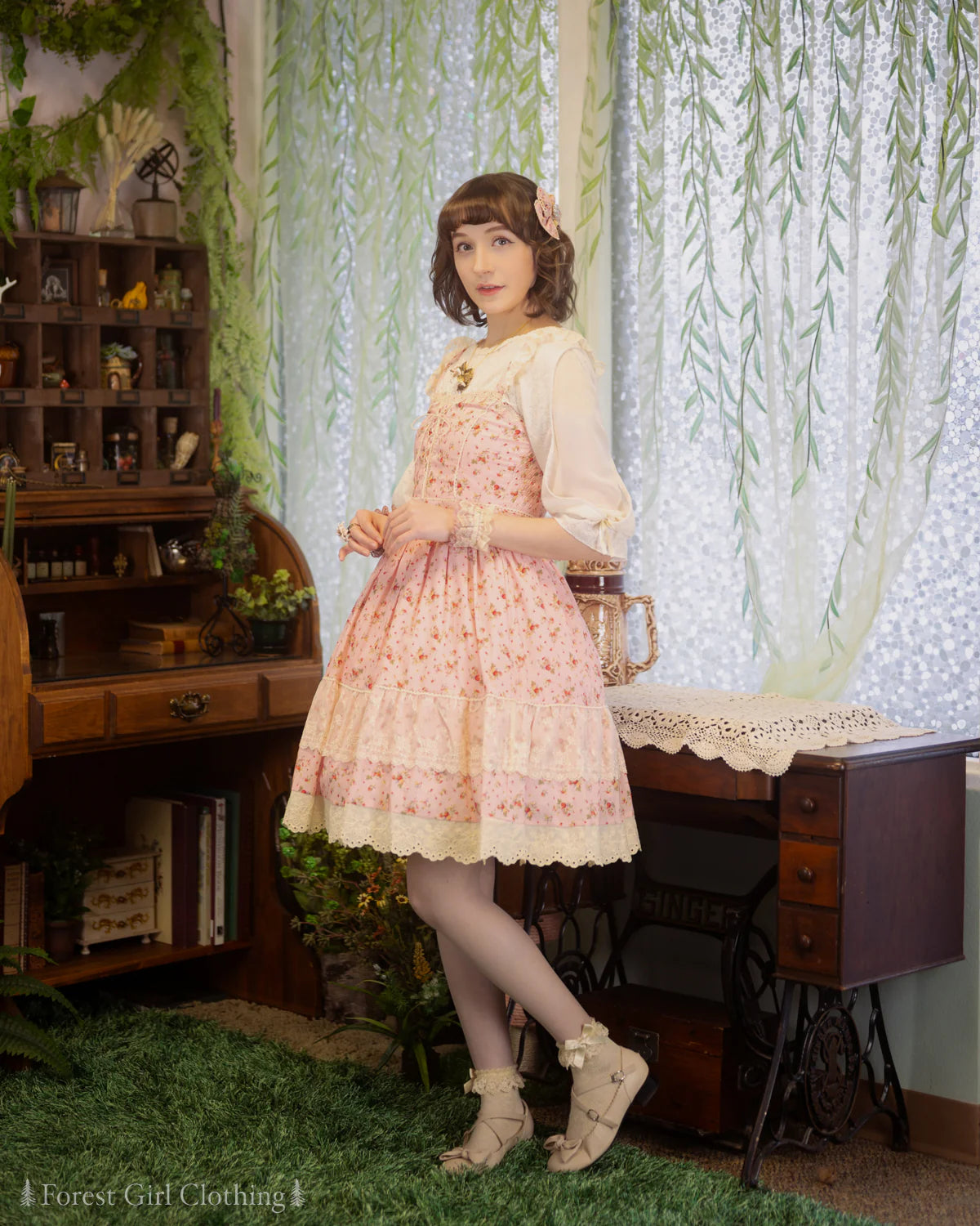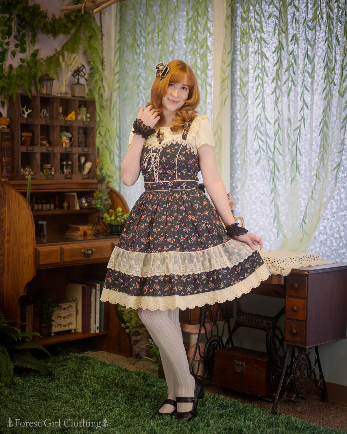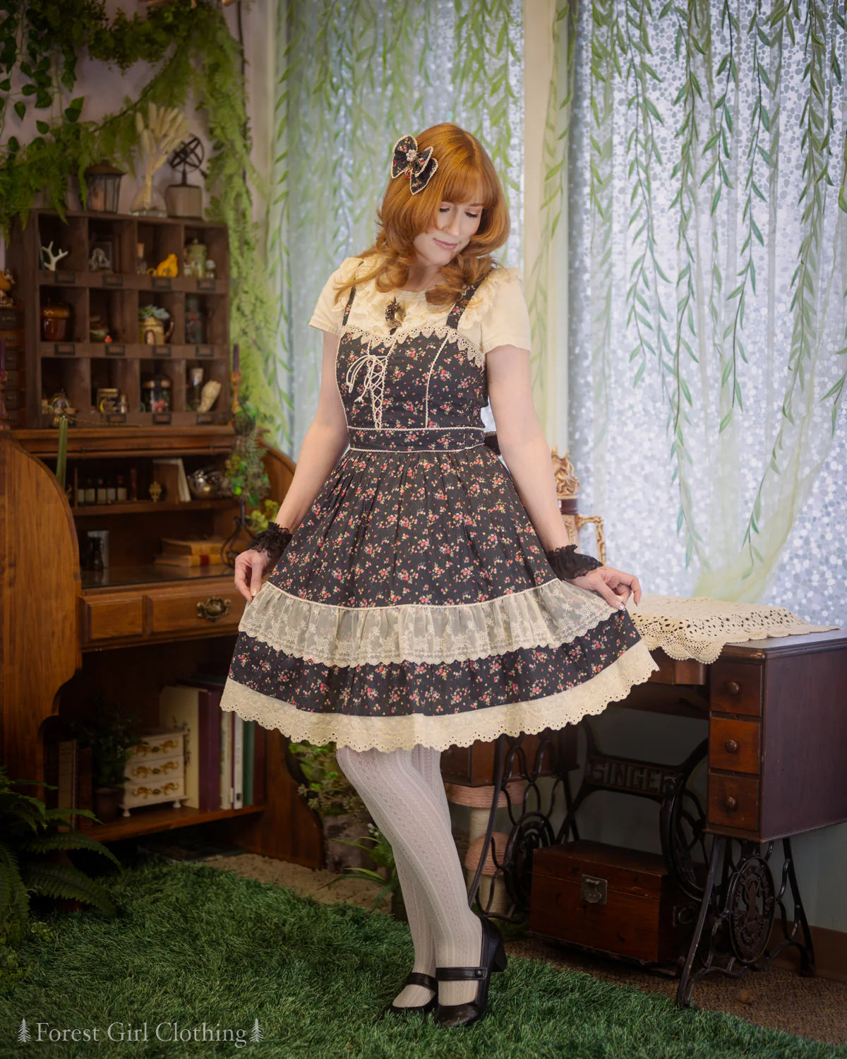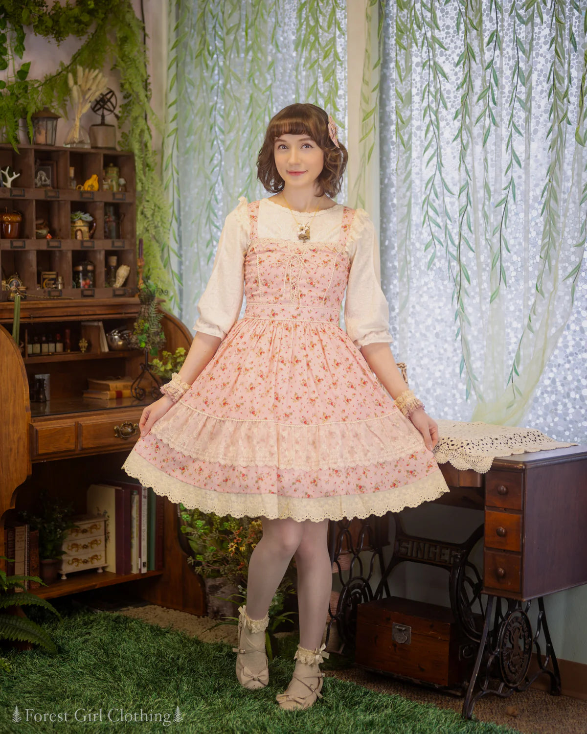 A dress as sweet as strawberries and cream! This summery sundress is made from cotton with an adorable strawberry print, and it is trimmed with three types of strawberry lace!